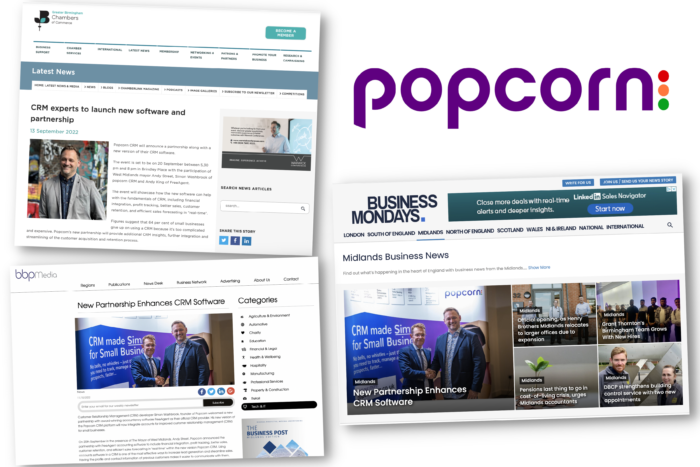On 20th September in the presence of The Mayor of West Midlands, Andy Street, Popcorn announced the partnership with FreeAgent accounting software to include financial integration, profit tracking, better sales, customer retention, and efficient sales forecasting in “real-time” within the new version Popcorn CRM.